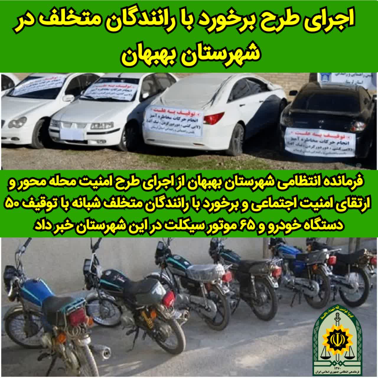 🚦🚨 اجراي طرح برخورد با رانندگان متخلف در شهرستان بهبهان فرمانده انتظامي بهبهان از اجراي طرح امنيت محله محور وارتقاء امنيت اجتماعي و برخورد با رانندگان متخلف شبانه با توقيف 50 دستگاه خودرو 65 موتورسيکلت متخلف در این شهرستان خبر داد. سرهنگ”منصور سيلاوي”در گفت و گو با خبرنگار خبرگزاري