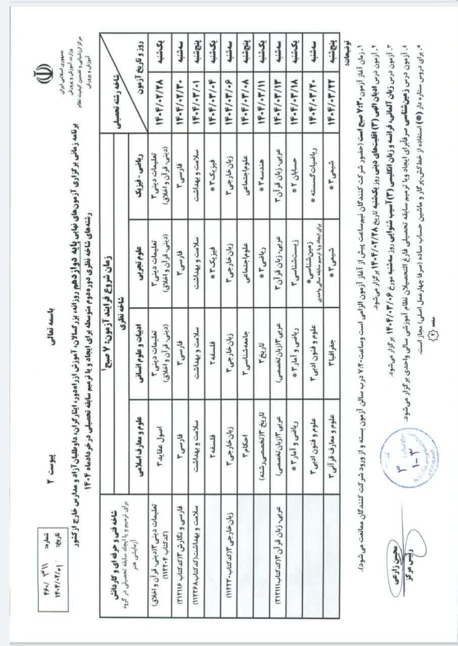 *🟥/برنامه آزمونهای نهایی پایه دوازدم خرداد ۱۴۰۴ اعلام شد* *⚠️با مسیرنوآوران چیزی را از دست ندهید – سریعترین و دقیقترین